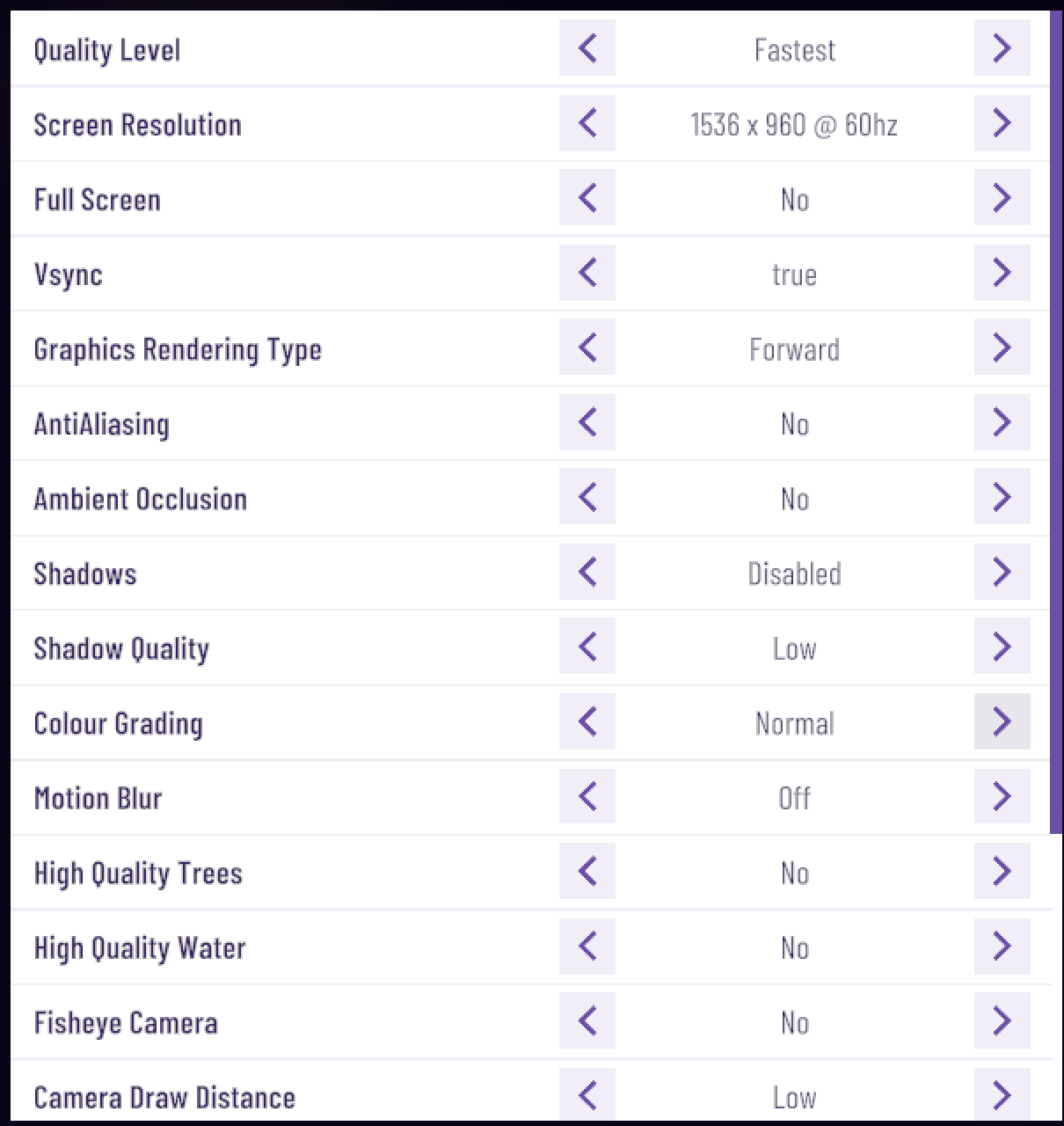 Game settings - screen
